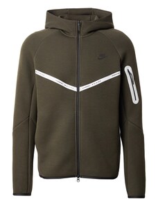 Nike Sportswear Tepláková bunda 'TECH FLC' olivová / čierna / biela