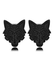 B-TOP Náušnice z nerezovej ocele VLK - čierna