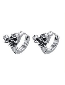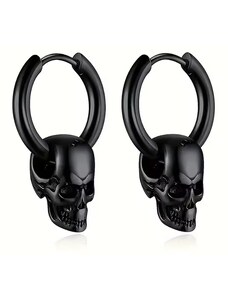 B-TOP Čierne nerezové krúžkové náušnice s odnímateľnou lebkou