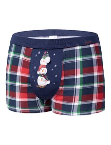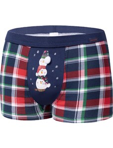 BASIC Tmavomodré kárované vianočné boxerky - Snehuliak 007/71