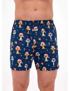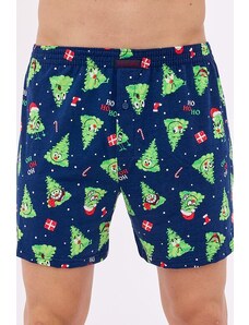 Cornette Vianočné pánske bavlnené boxerky Drum 007/64 tmavomodré, Farba tmavomodrá