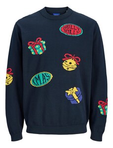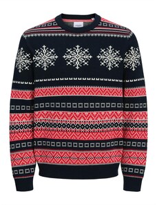 JACK & JONES Sveter 'JORHoliday' tmavomodrá / svetložltá / mätová / červená