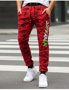Dstreet Trendy maskáčové tepláky pre pánov v červenom farebnom prevedení