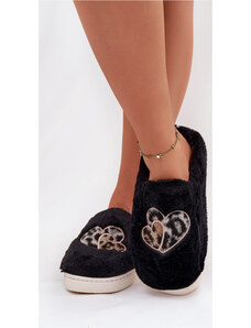 Kesi Čierne dámske chlpaté papuče srdiečka Amandra