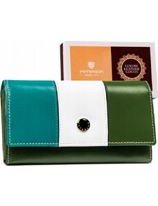 Peterson Trojfarebná - zeleno - modro - biela kožená dámska peňaženka Y155 [DH] PTN RD-08-GCL-S