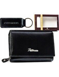 Peterson Čierna kožená stredná peňaženka s kľúčenkou Y355 [DH] PTN SET-D-02-KCS