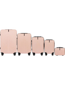 Svetloružová sada cestovných kufrov WINGS SWAN SN120-5, Set of 5 suitcases (L, M, S, XS, BC) Wings ABS+, PINK