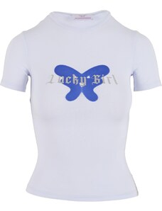 Felicious Tričko 'Lucky Girl ' azúrová / strieborná / biela
