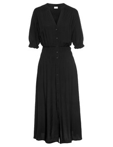 Makover K086 Šaty v midi dĺžke s ozdobnými gombíkmi - čierne