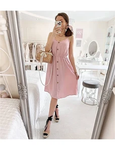 Numoco Ružové midi šaty s plisovanou sukňou Polina