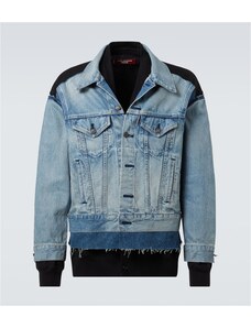Maison Margiela Corduroy-trimmed distressed denim jacket