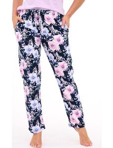 Tmavomodré dámske pyžamové nohavice s kvetinami Cornette 690/48 S-2XL damskie