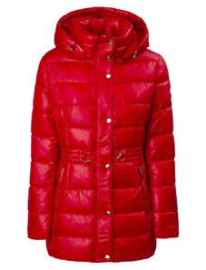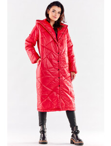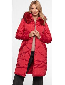 Perso Červený dámsky dlhý zimný prešívaný kabát BLH 818025 FF - Red