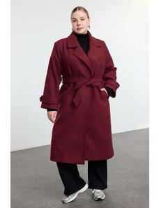BASIC Vínový dlhý dámsky prešívaný kabát s pásikom FAVI TY4961