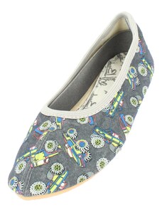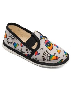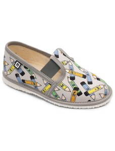 Tvar špičky s dôrazom na typicky detský dominantný palček zabezpečuje dostatočný priestor pre prsty. Elastická stielka zvyšujúca komfort pri chôdzi je z kombinácie „pamäťovej“ peny a prírodnej podšívkovej ECO kože (chromfree). Optimálne sa prispôsobí anatomickému 3D tvaru detského chodidla v pozdĺžnom aj priečnom profile s dôrazom na vytvorenie pätnej jamky. Táto v spolupráci s opätkom podporuje kolmé postavenie päty voči podložke ako prevenciu proti vybočeniu piat (valgozita, varozita). Podošva je pružná, ohybná, z materiálu na báze prírodného kaučuku s protišmykovým efektom na hladkej keramickej, laminátovej resp.lakovanej podlahe . Tenký klin z pružného materiálu pod pätou tlmí nárazy na citlivú pätovú kosť pri skákaní a behaní na tvrdých povrchoch, na ktorých sa deti prevažne pohybujú. Päta nohy mierne zvýšená voči podložke podporuje funkčnú zdatnosť nôh. Chôdza v takejto obuvi je pružnejšia a menej únavná.