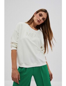 The dimensions of the one-size sweatshirt measured flat: armpit width - 67 cm, sleeve length - 49 cm (from the seam), hip width - 54 cm, total length - 71 cm.