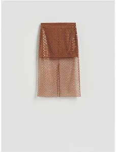 Reserved - Flitrovaná midisukňa - zlatohnedá