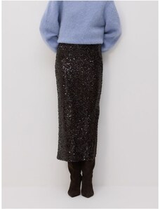 Reserved - Flitrovaná midisukňa - tmavohnedá