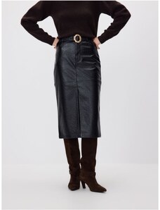 Reserved - Midisukňa z eko kože - čierna