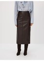 Reserved - Midi sukňa s rozparkom - hnedá