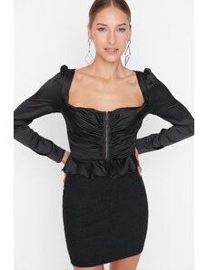 Trendyol štvorcový golier Čierne večerné šaty