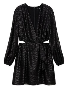 Reserved - Minišaty z lyocellu - čierna - Véčkový výstrih s viazaním,Vypchávky na pleciach,Dlhé rukávy s manžetami,Zapínanie na zips,Viazanie na prednom diele,mini dĺžka