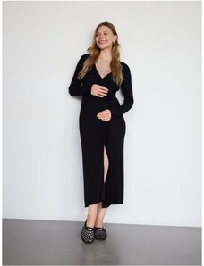 Reserved - Viskózové midi šaty - čierna