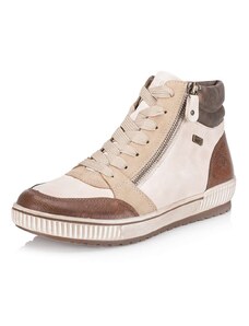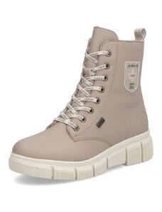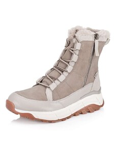 Štýlové členkové topánky RIEKER sa vďaka univerzálnej béžovej farbe ľahko kombinujú s akýmkoľvek outfitom a ich nadčasovosť Vás môže sprevádzať každým dňom. Zvršok zaujme nápaditou kombináciou materiálov, doplnený o charakteristické logo značky v oblasti päty a dekoračný zips na priehlavku, ktorý dotvára módny vzhľad. O pohodlné obúvanie sa postará praktické šnurovanie v kombinácii s bočným zipsom. Zateplená podšívka poskytne potrebný tepelný komfort počas chladných dní, zatiaľ čo membrána TEX chráni pred vlhkosťou a zároveň zabezpečuje priedušnosť. Spojenie funkčnosti a trendového dizajnu zaručí, že budete v teple a štýlovo obutá počas celej zimy.