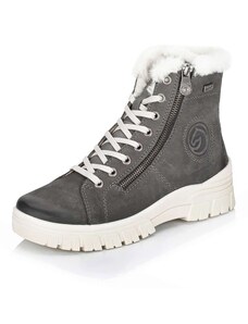 Rieker REVOLUTION je nový rad modernej športovej obuvi s obrovským dôrazom na komfort a pohodlie aj pri celodennom nosení. Hľadáte zimné topánky, ktoré sú štýlové, ale zároveň vysoko praktické? Tak to ste na správnom mieste. Táto obuv s čiernym koženým zvrškom, v hornej časti zdobeným svetlým huňatým kožúškom, sa stane výborným doplnkom Vášho botníku. Praktickým zipsom si uľahčíte proces obúvania a šnurovaním si ich upravíte podľa svojich potrieb. Počas dlhých prechádzok zimnou krajinou oceníte vyberateľnú mäkkú thermo stielku a zateplenie ovčou vlnou, ktoré zaručia Vaše pohodlie. Navyše pred nepriaznivým počasím Vás ochráni aj nepremokavá funkčná vrstva. Pokiaľ si tieto členkové topánky zaobstaráte do chladného zimného počasia, tak svoje rozhodnutie určite nebudete ľutovať.