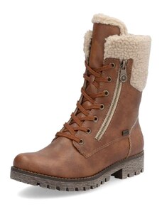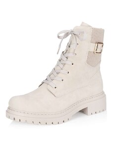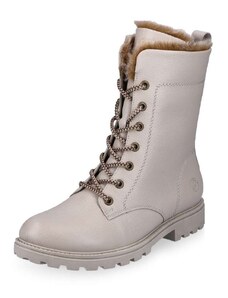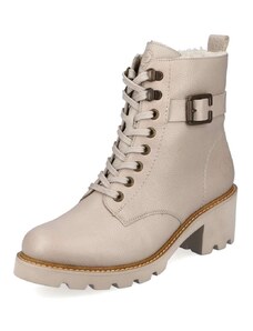 Zimná obuv od značky RIEKER prináša komfort a štýl v podobe béžových členkových topánok s hrejivým lemom okolo členka a zatepleným vnútrom, ktorý vás zahreje aj v chladných dňoch a ako bonus je tu vyberateľná stielka. Praktický bočný zips zaisťuje ľahké obúvanie, zatiaľ čo šnurovanie umožňuje prispôsobiť topánky pre maximálne pohodlie. Hladký zvršok je doplnený ozdobnou aplikáciou tmavej farby s logom značky na zadnej časti, čo vytvára módny kontrast. Každodenné pochôdzky, prechádzky prírodou alebo mestom budú sprevádzané pohodlím vďaka vyššej stabilnej podošve, ktorá účinne tlmí nárazy a poskytuje istotu pri každom kroku.
