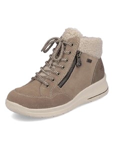 Obuv REMONTE je vyšším radom značky RIEKER, obuv sa vyznačuje kvalitou použitých materiálov. Tento model členkovej obuvi bude zaručene Vašim dobrým spoločníkom v chladnom zimnom počasí. Zvršok z pravej hladkej kože je opatrený špeciálnou texovou membránou, vďaka ktorej obuv nepremokne. Ďalšími prednosťami sú napríklad podšívka z pravej ovčej vlny, Thermo stielka či bezpečnostný systém Remonte Grip. Táto obuv vyniká nielen špeciálnymi technológiami, ale aj svojim vzhľadom, ktorý krásne dopĺňa kožušinové lemovanie horného okraja či kontrastný prúžok na vyššej podošve. Skrátka tento model Vám zaistí všetko potrebné, a ešte v ňom budete vyzerať skvele.