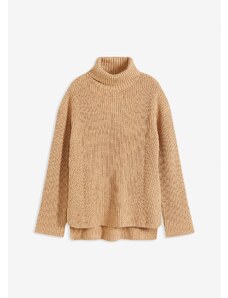 Bonprix Oversize rolák z bavlneného mixu, farba hnedá
