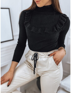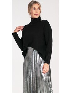 RUE PARIS Čierny oversized svetrík s rolákom -LC-SW-3019.05P-black