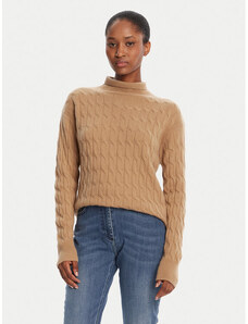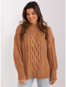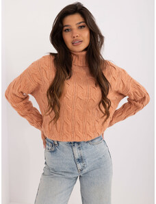 ITALY MODA Béžový vrkôčikový sveter s rolákom AT-SW-2348.95-camel