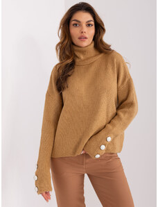 ITALY MODA Hnedý pletený rolák AT-SW-2363-2.11P-camel