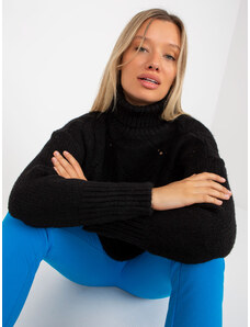 BASIC Čierny pletený sveter s rolákom BA-SW-8038.30-black