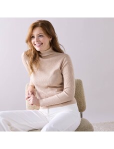 ITALY MODA Svetlobéžový rolák s vrkôčikovým vzorom -AT-SW-2348.07-jasny beżowy