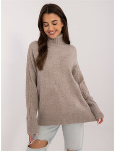 ITALY MODA Tmavobéžový vrkôčikový sveter s rolákom AT-SW-23445.00-dark beige
