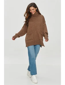 BASIC Tmavohnedý dámsky hrejivý oversize rolák CH-SW-72989.68-dark brown