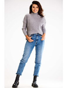 MladaModa Rolákový sveter s ažúrovým vzorom model 44500 farba džínsová