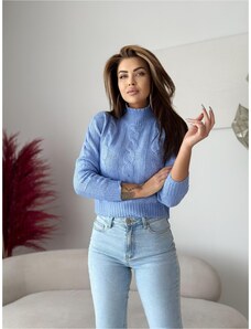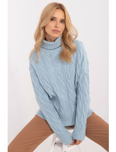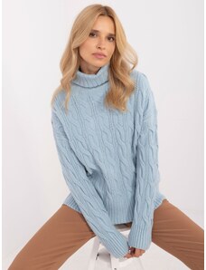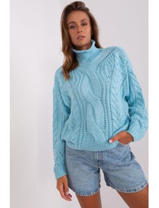 ITALY MODA Svetlomodrý rolák s vrkočovým vzorom AT-SW-2355-2.30X-mietowy