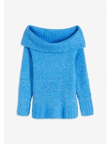 Bonprix Pletený pulóver s odhalenými plecami, farba modrá