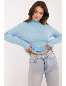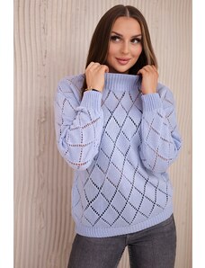 MladaModa Rolákový sveter s ažúrovým vzorom model 44500 svetlomodrý