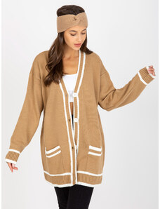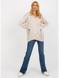 RUE PARIS Čierny voľný sveter na gombíky s lemovaním -LC-SW-0258.03P-black
