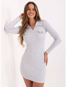 RUE PARIS Šedé priliehavé šaty s dlhým rukávom RV-SK-6009.15X-grey
