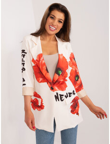 ITALY MODA Smotanové sako s potlačou vlčích makov -DHJ-MA-18525-2.36-ecru