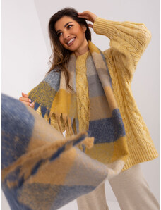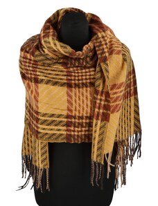 ITALY MODA Žltý dámsky károvaný šál so strapcami AT-SZ-231501.49-dark yellow