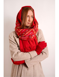 MladaModa Šatka arafatka s lesklou niťou a strapcami model CH3007 červená+horčicová