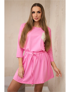 Predstavujeme vám pohodlné šaty. Šaty majú stuhu imitujúcu kravatu. Dve praktické vrecká na bokoch. Šaty sú vyrobené z kvalitného materiálu. Veľkosť je univerzálna a vyhovuje dámam, ktoré nosia veľkosť S, M alebo L. Zloženie: 90% bavlna , 10% elastan Rozmery: Šírka pod pazuchami: 56 cm Celková dĺžka: 92 cm Šírka v oblasti bokov: 52 cm Dĺžka rukáva od podpažia: 43 cm