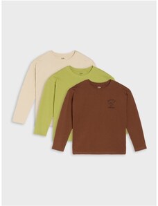 Sinsay - Päťbalenie tričiek 3 dlhým rukávom - béžová